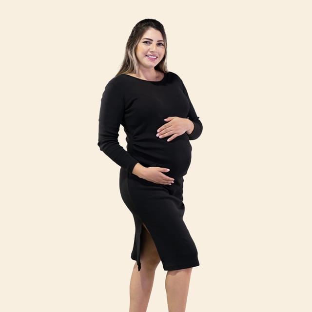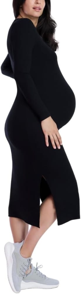 Motherhood Vestido de embarazo manga larga color negro talla XL