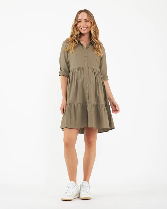 ISABEL MATERNITY Vestido Maternidad botones color verde oliva Talla XS