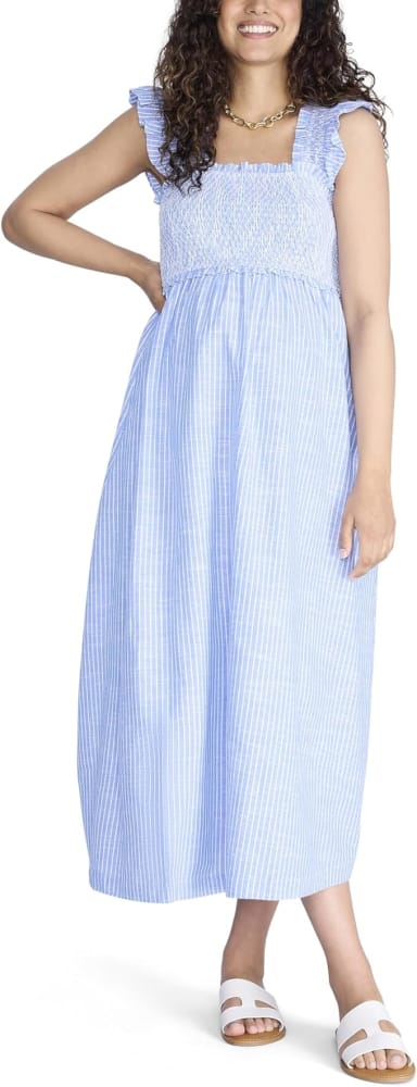 Motherhood Vestido de embarazo sin mangas rayas azul y blanco talla M