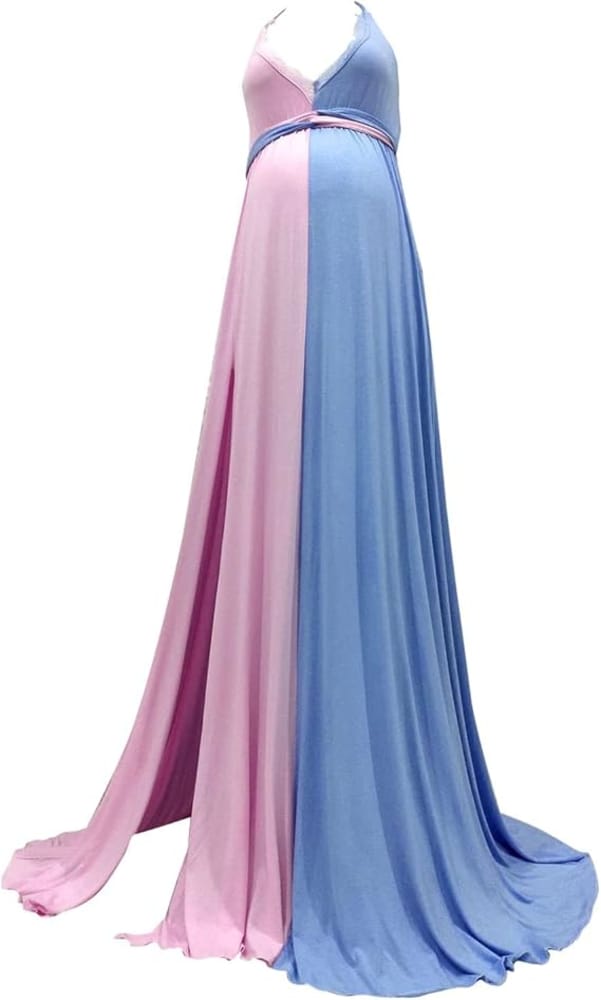 Motherhood Vestido de embarazo Gender Reveal encaje azul y rosa talla L
