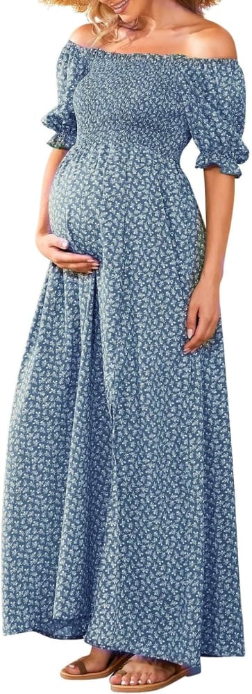 Motherhood Vestido de embarazo hombros descubiertos color azul talla M
